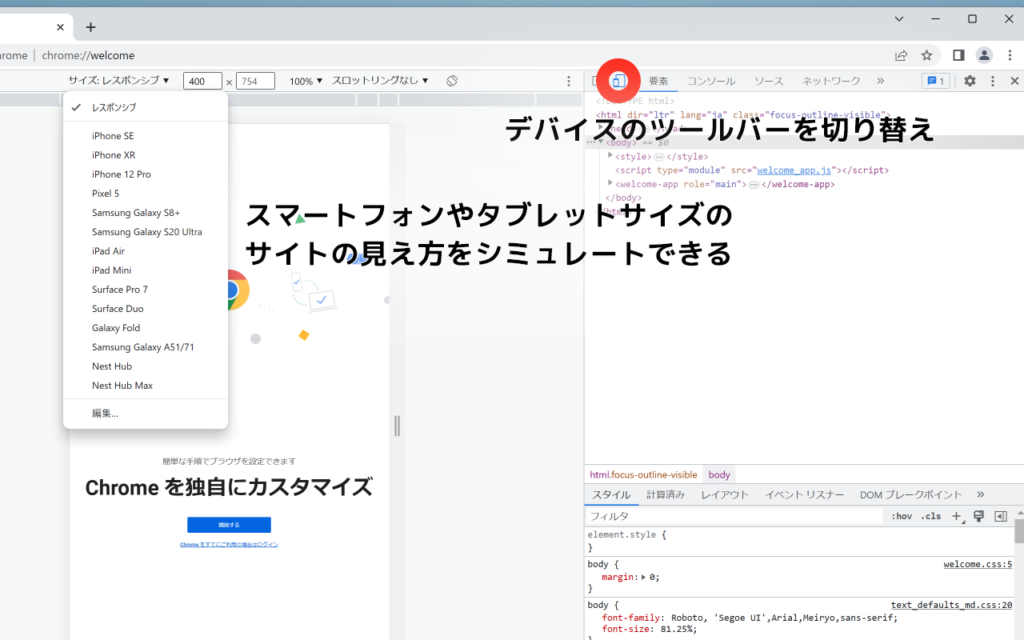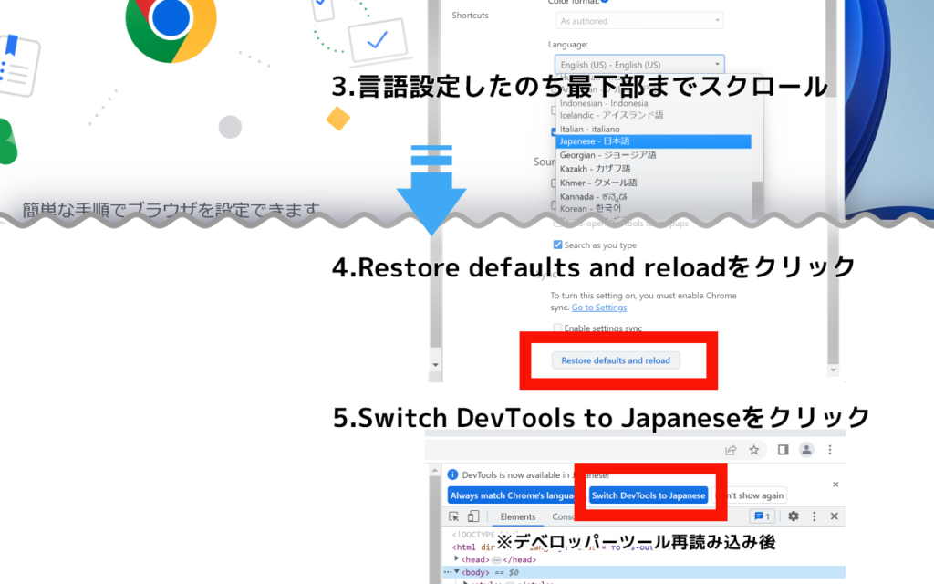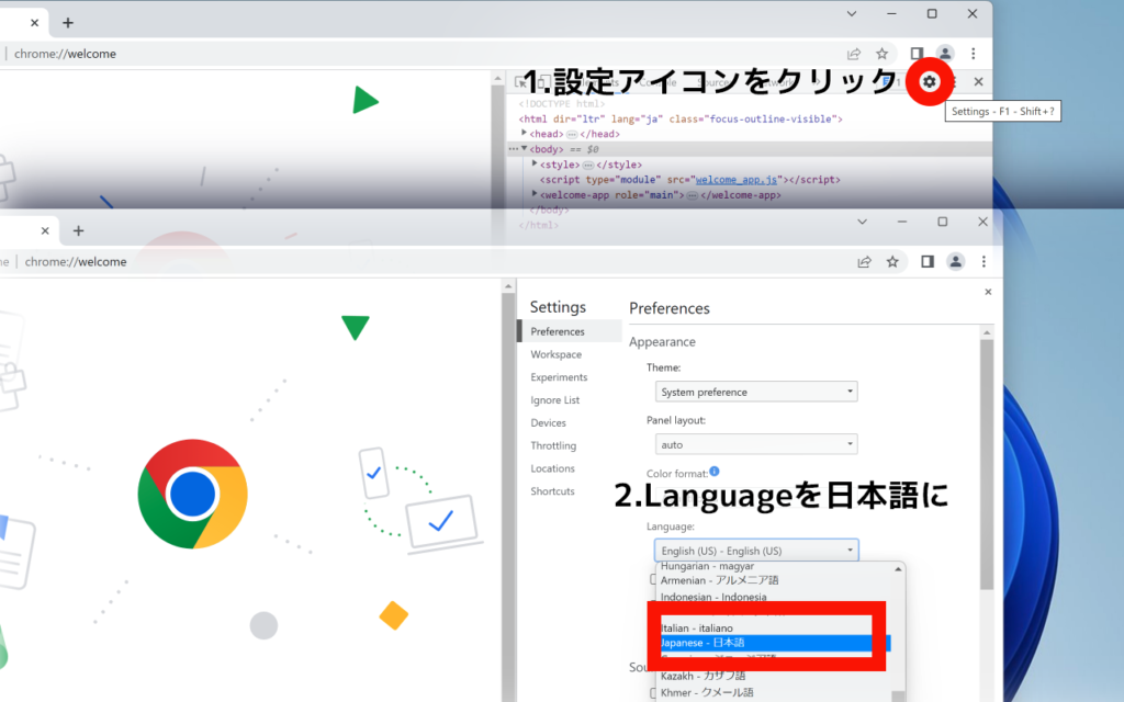 デベロッパーツールを日本語化します。